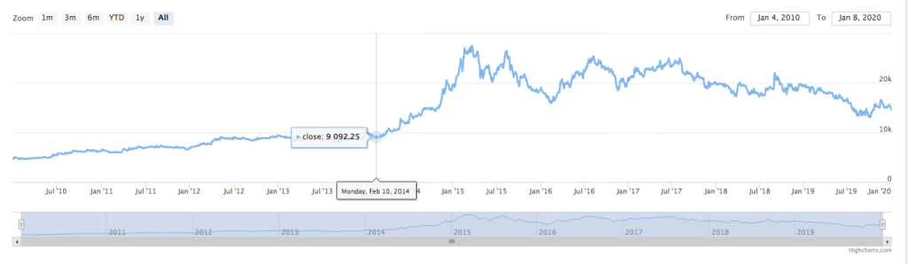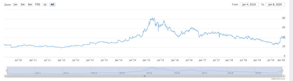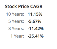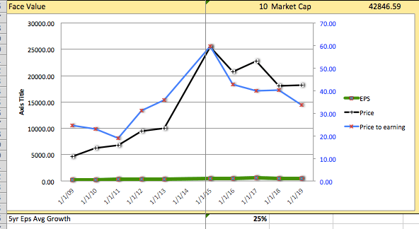 It has been profitable in the last 10 years, paid dividends in the same, the price is down by about 20%. Dividend payout is about 16% to 19%. The CAGR growth in price has droped in the last few years, It has slowed down in price growth. Current 10 year CAGR for the stock prices is 16%, in 2015 it was 38%.