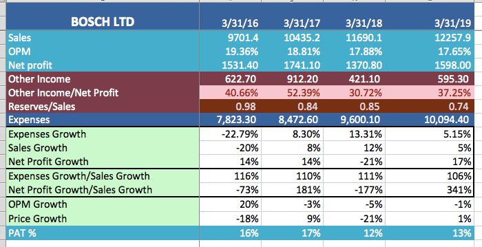 Expenses and sales growth have been slower in teh last one year, net profit took a hit in 2018 (-21), but recovered decently in 2017 (17%). They must have done something to squeeze the margins since sales growth was tepid at best. 2018, it looks like Stock Price (SP) took a -21% hit.
